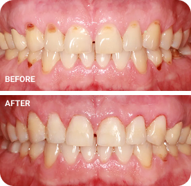 Veneers are thin, custom-made shells that are bonded to the front surface of teeth. They can correct various issues like chipped teeth, gaps, and misshapen teeth, providing a natural-looking and uniform smile. The veneers never stain or discolor; they are elegant and translucent allowing them to be as natural as possible as a real tooth and the cosmetic results are instant gratification. Veneers could be used as a two-visit alternative to a year or more orthodontic treatment- Instant Makeover. Veneering your teeth is a very conservative approach in drastically altering your smile with more tooth preservation than a conventional crown; usually, requiring only a ½ mm reduction of your tooth or no preparation at all, and a common procedure used in cosmetic dentistry.