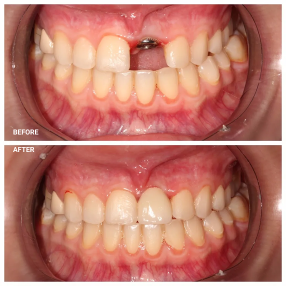 Front tooth was extracted due to the root fracture, Immediate Dental implant (immediate placement and immediate loading) was done and less than 3 hours patient had her smile fixed!